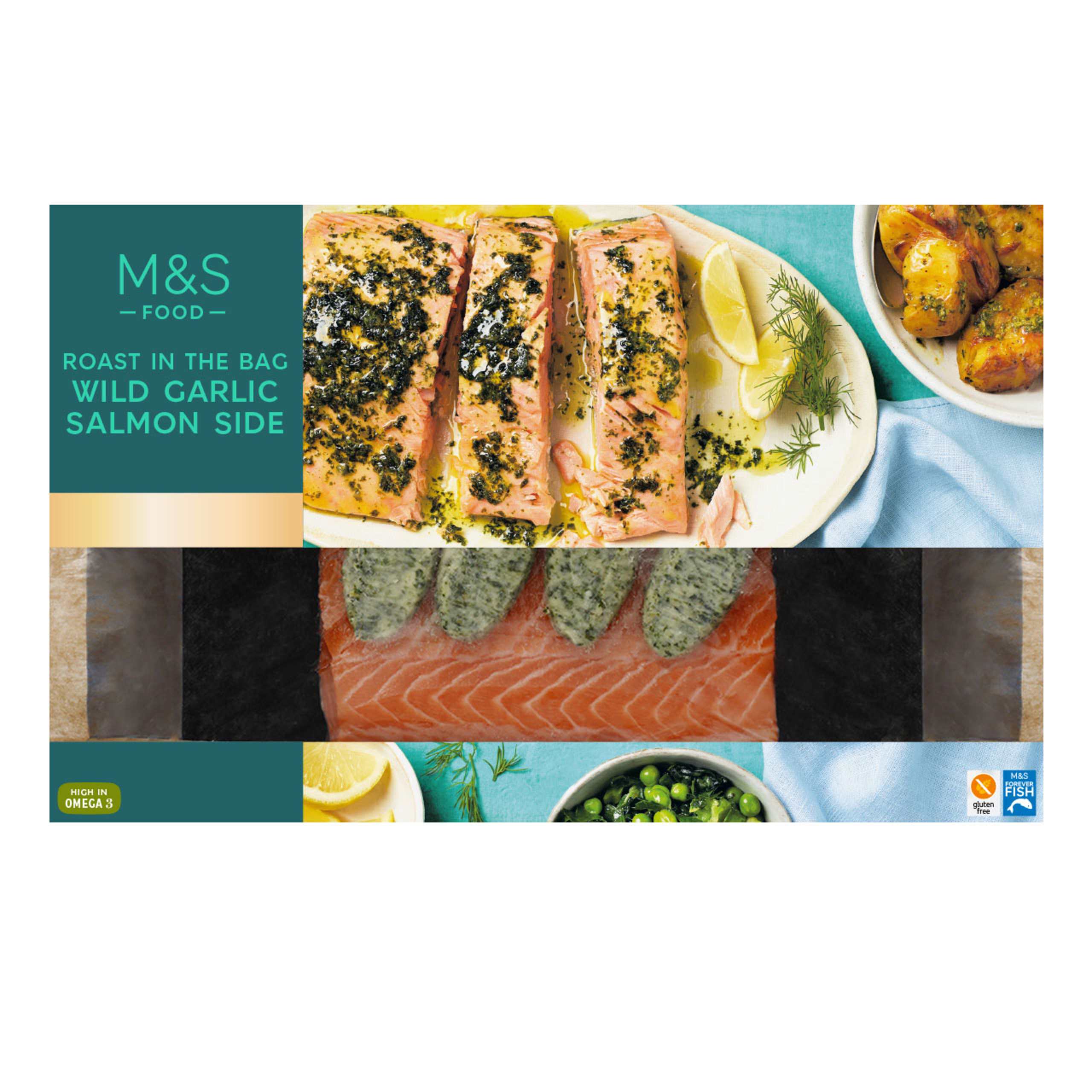 Responsibly sourced Scottish salmon topped with a punchy garlic and wild garlic butter, ready to roast in a fuss-free oven-ready bag to lock in all the aromatic flavour and tenderness.