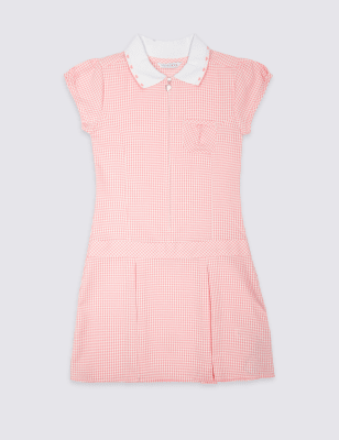 This gorgeous school dress will light up any school day, as well as lighten any wash load. It features pretty heart embroidery on the collar and a fashionable heart detail zip front, as well as a clever Crease Resistant. Featuring Stain Defence™ technology to keep dirt at bay, this cap sleeve gingham dress will not only look great, but stay looking great all week long, whatever activities are in store. Available in a range of colours to suit any school uniform, this is one summer school dress both kids and parents will love.