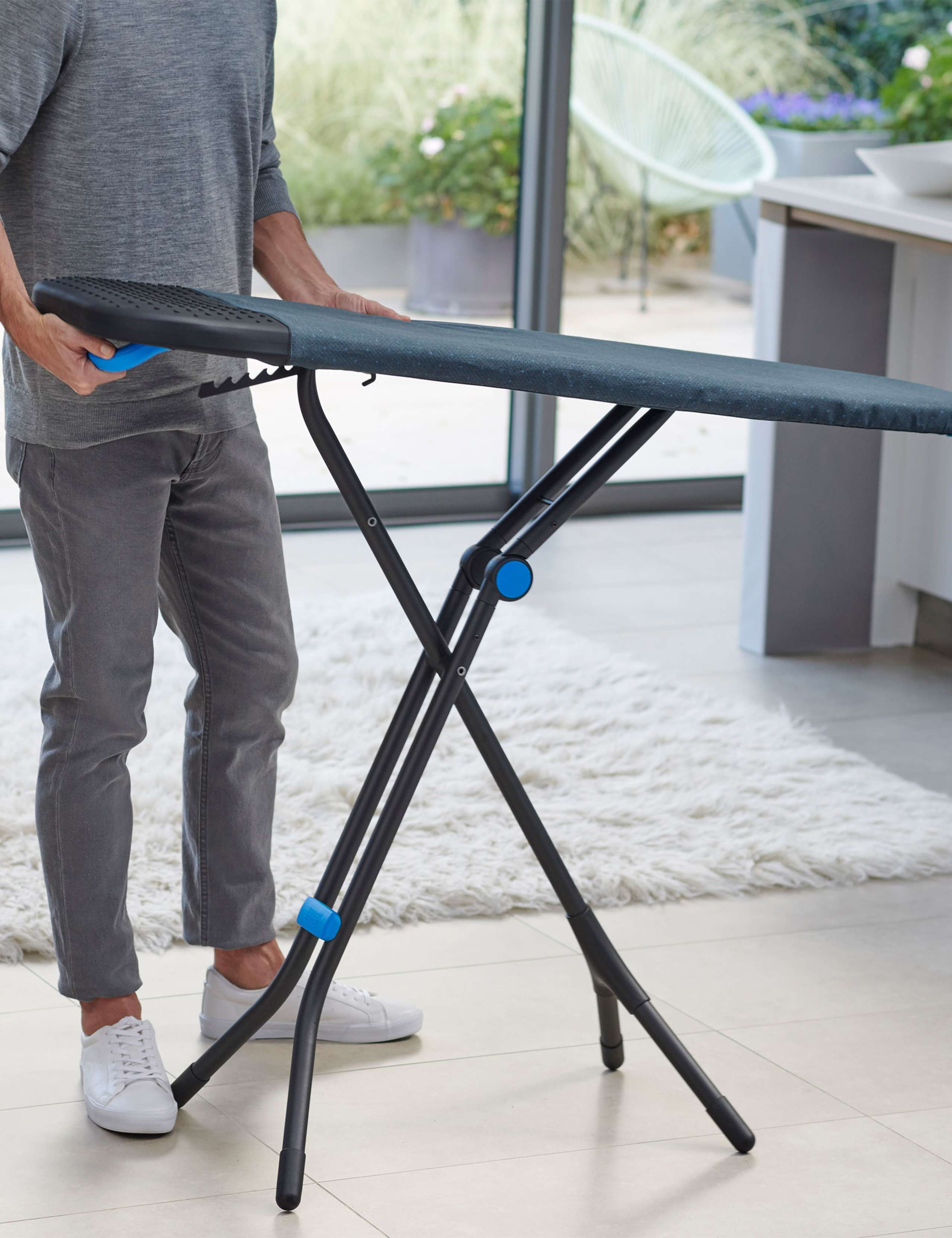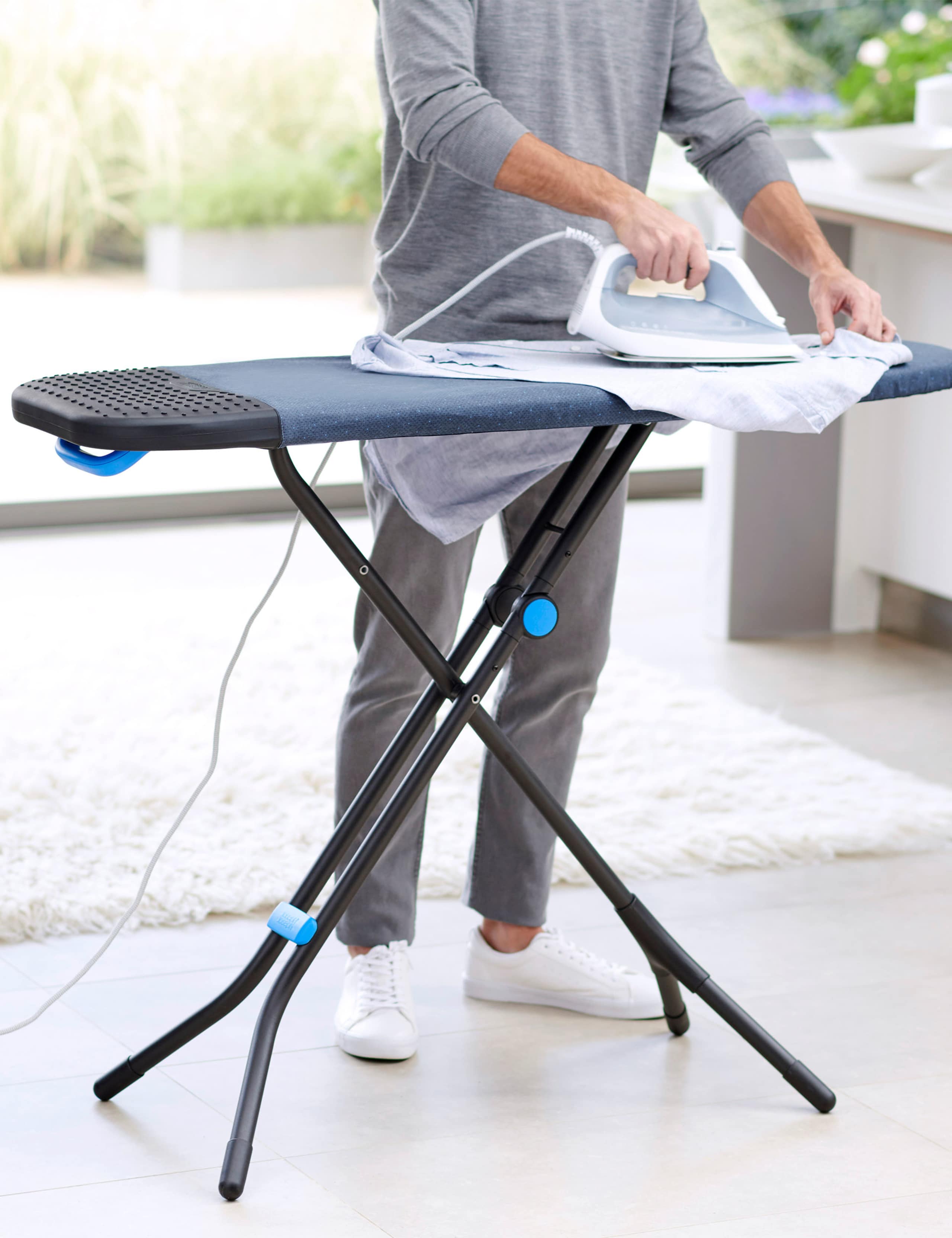 This Glide Plus easy-store ironing board from Joseph Joseph is a practical addition to your laundry room. Its adjustable height features seven different settings so you can find the right position for you. When not in use, it's easily folded for storage. A separate hanging hook is included.