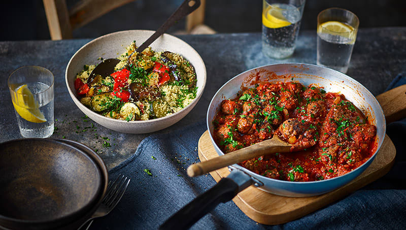 “Meatballs are always a real crowd-pleaser. Here, I’ve used succulent M&S Select Farms Scotch lamb mince and paired it with vibrant Mediterranean veggies in a warming tomato sauce, served with light, fluffy couscous.”