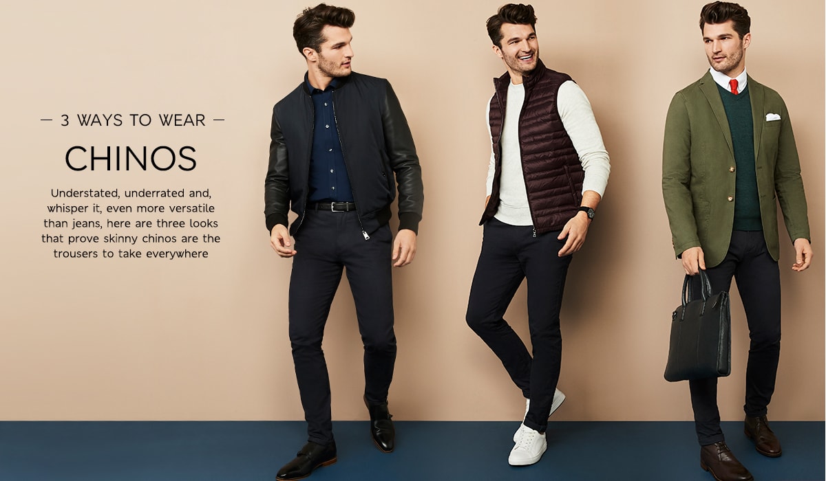 Understated, underrated and, whisper it, even more versatile than jeans, here are three looks that prove skinny chinos are the trousers to take everywhere