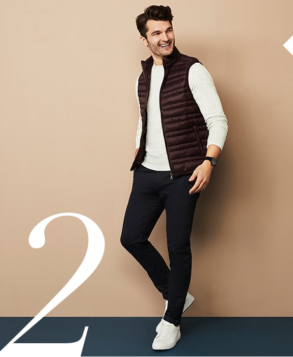 While we can all agree joggers are super comfortable, their slouchy appearance makes them a compromise in the style stakes outside the house. We’ve added a touch of stretch to our cotton chinos, so no matter what you’re up to – walking to the gym, meeting up with mates to watch a match or running errands – your trousers will move with you. Simple casual pieces like our revamped sweatshirt, lightweight-but-warm gilet and our brand-new sparkling white sneakers carry on the easy-to-wear vibe. Roll up the chinos to show a bit of ankle once the warm weather returns.