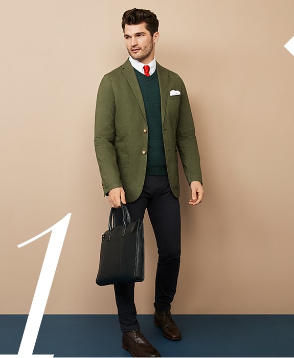 In all but the most corporate environments, suits are no longer the no-brainer wardrobe choice for work. Instead, embrace slim or skinny chinos. They closely resemble suit trousers, which makes them a reliable choice for the office, but they’re more casual and therefore more modern. Combine with an unstructured blazer in a contrasting colour to mimic a suit minus the stiffness, adding a fine merino knit to counterbalance the spring jacket when it’s a bit chilly. Desert boots in leather nod to classic work shoes but have the flexibility to be worn at the weekend too, while a smart briefcase hammers home the office-appropriate authority.