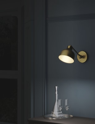The Cambourne wall light has an adjustable arm so you can direct the beam exactly where you want. Its antique brass finish construction ensures a cool, industrial look. Matching table and pendant lights are available.