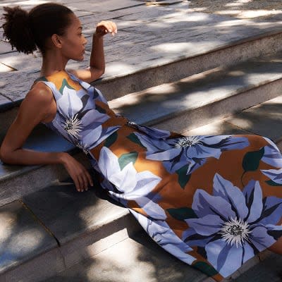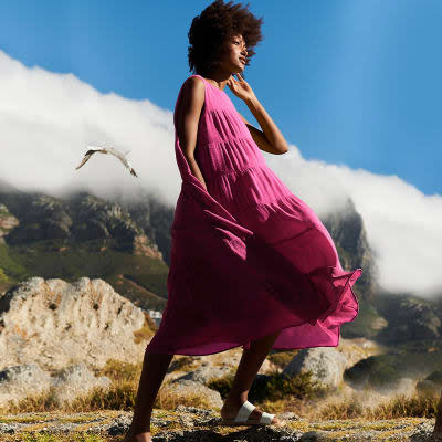 Statement prints add an artistic edge, including an oyster shell design which accents a flowing cowl-neck dress, silk-blend blouse and column midi skirt. For festive soirées, there's a sleek black shift dress with shimmering embellishments and an adjustable satin bow offering an array of styling options.