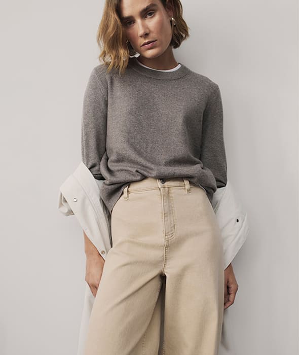 Pair your jumper with the jeans of the moment – our wide-leg fit – in a rich shade of ecru. They come in petite, regular and long lengths, so you can easily find your perfect fit. Finish your outfit with some simple metallic jewellery for a pared-back yet put-together look.