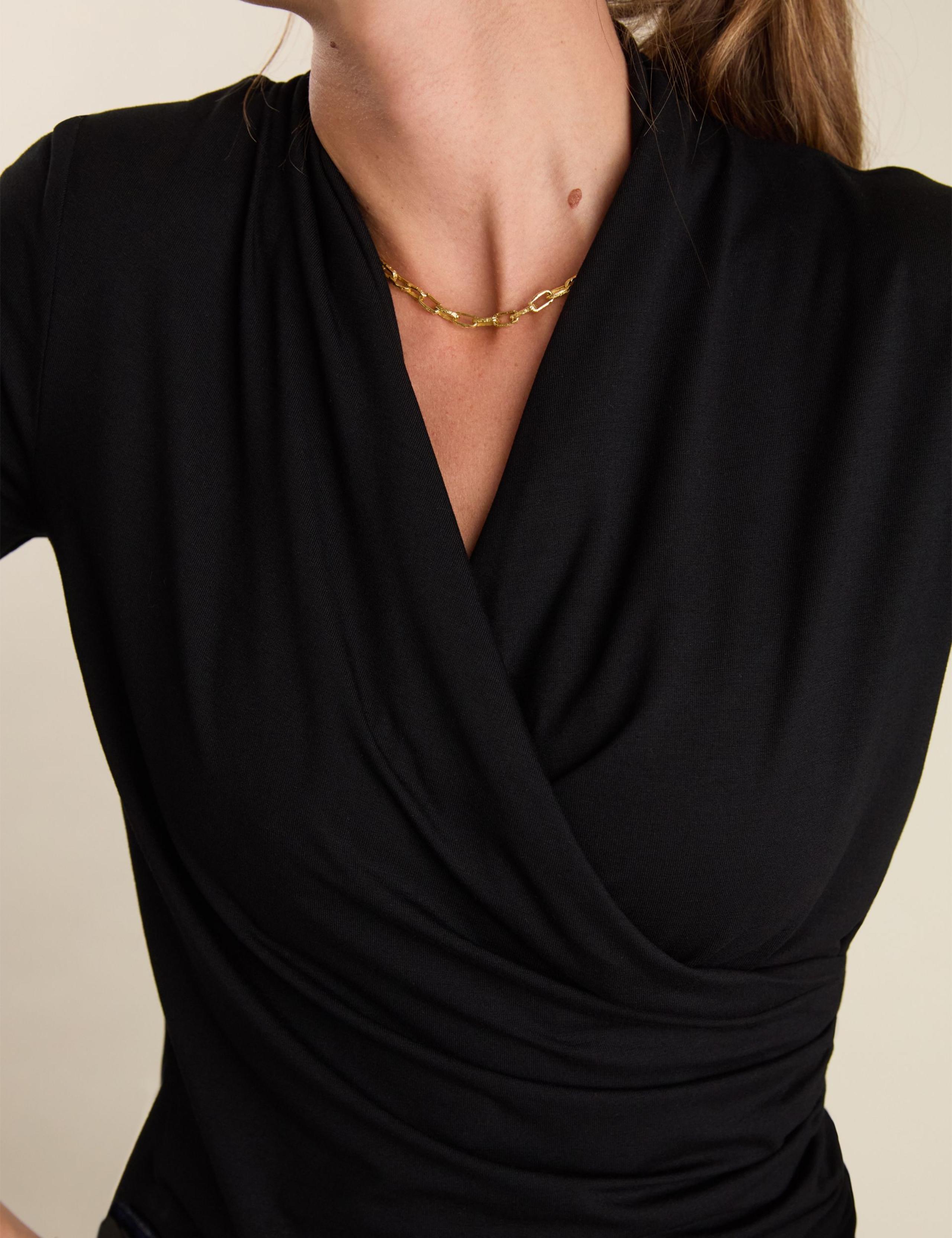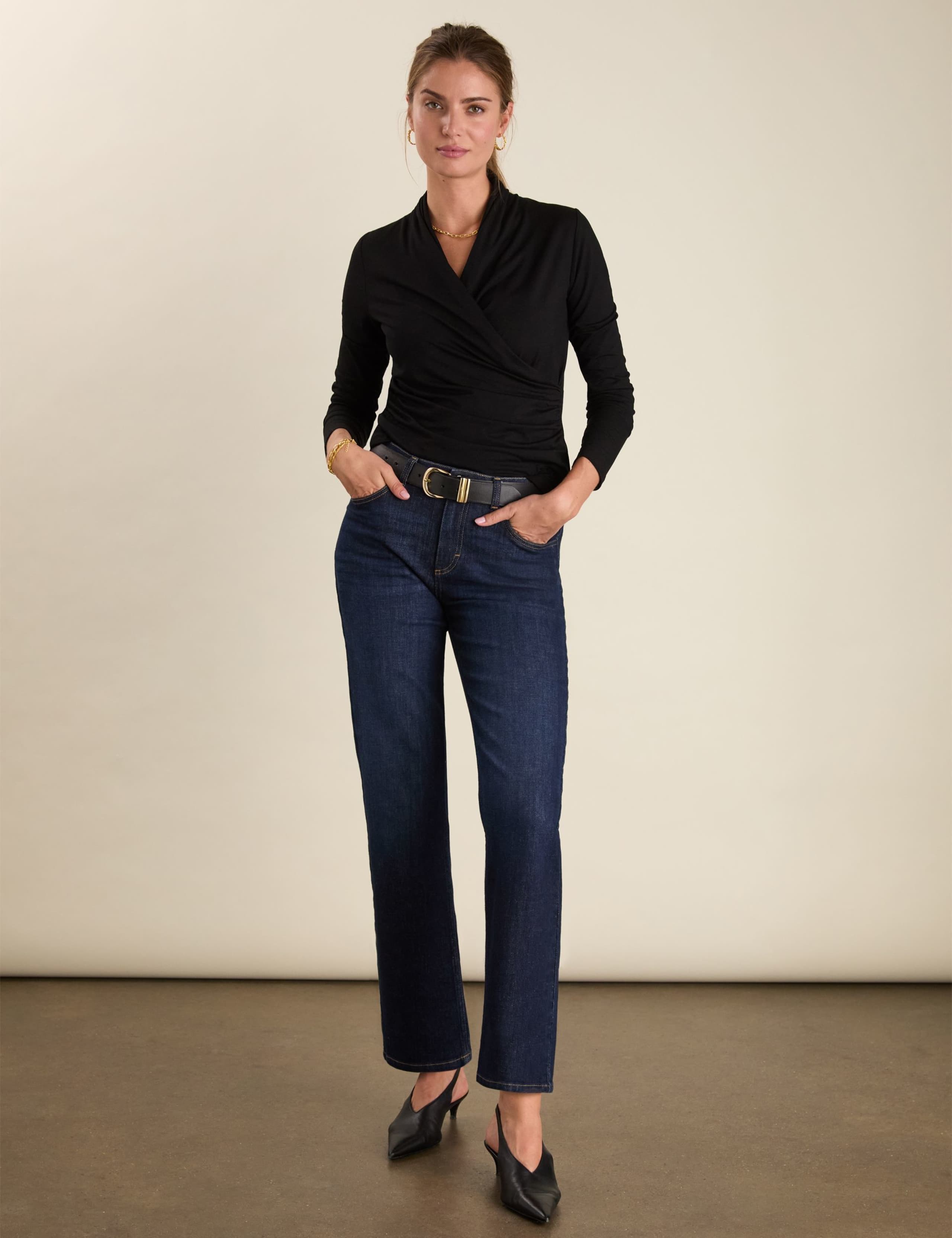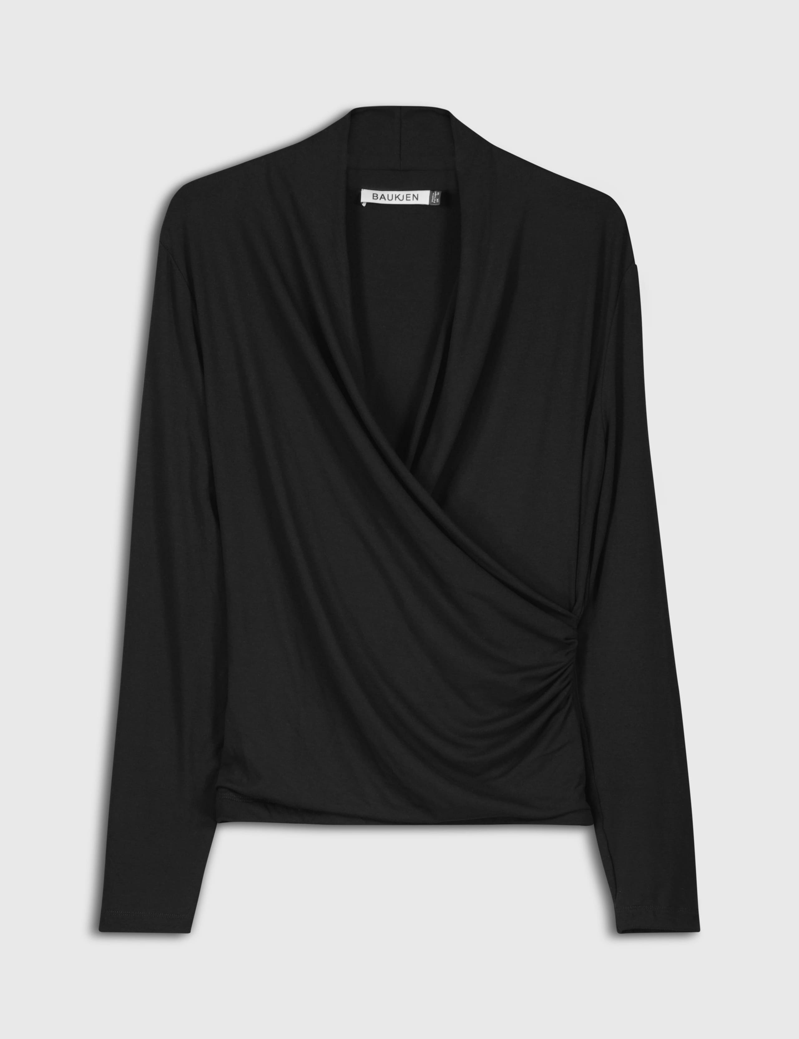 This Baukjen top is crafted from jersey fabric that drapes effortlessly for an elegant look. It's cut to a flattering fitted silhouette, with a feminine v-neckline and slim, long sleeves. The fixed wrap design creates a smart crossover effect on the front.