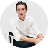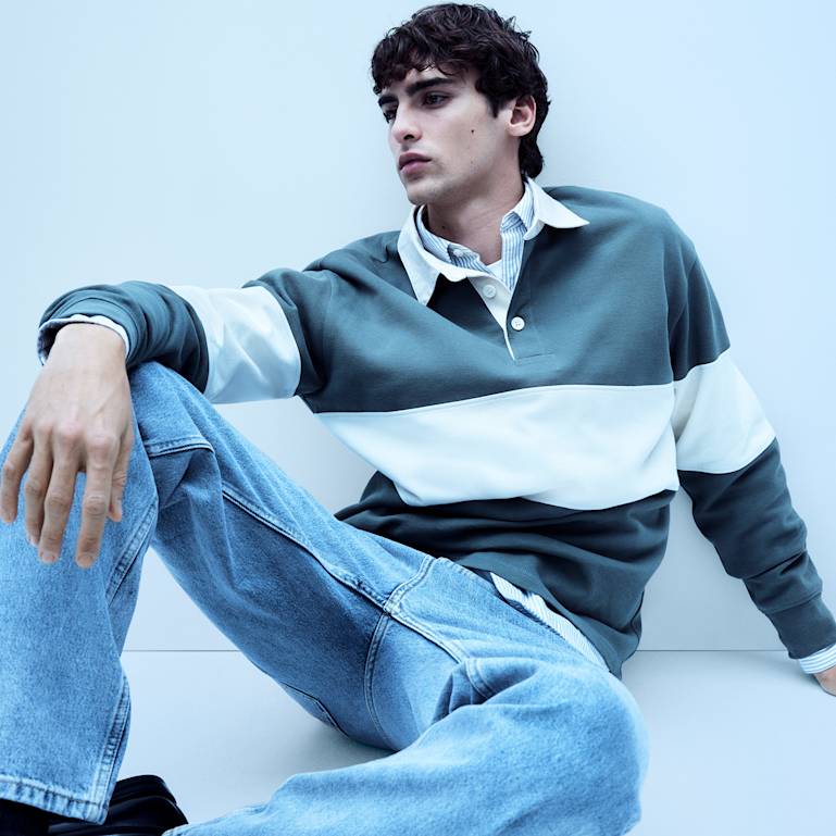 Man wearing light-green long-sleeved top and cream trousers