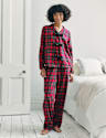 Celebrate the season with a festive pair from our collection of women’s Christmas pyjamas. A two-piece set in snuggly fleece fabric will keep you cosy and warm, while a shorter sets are perfect for Yuletide lounging sessions. Look to classic red checks for timeless wintry patterning, or choose from our fun Christmas character designs