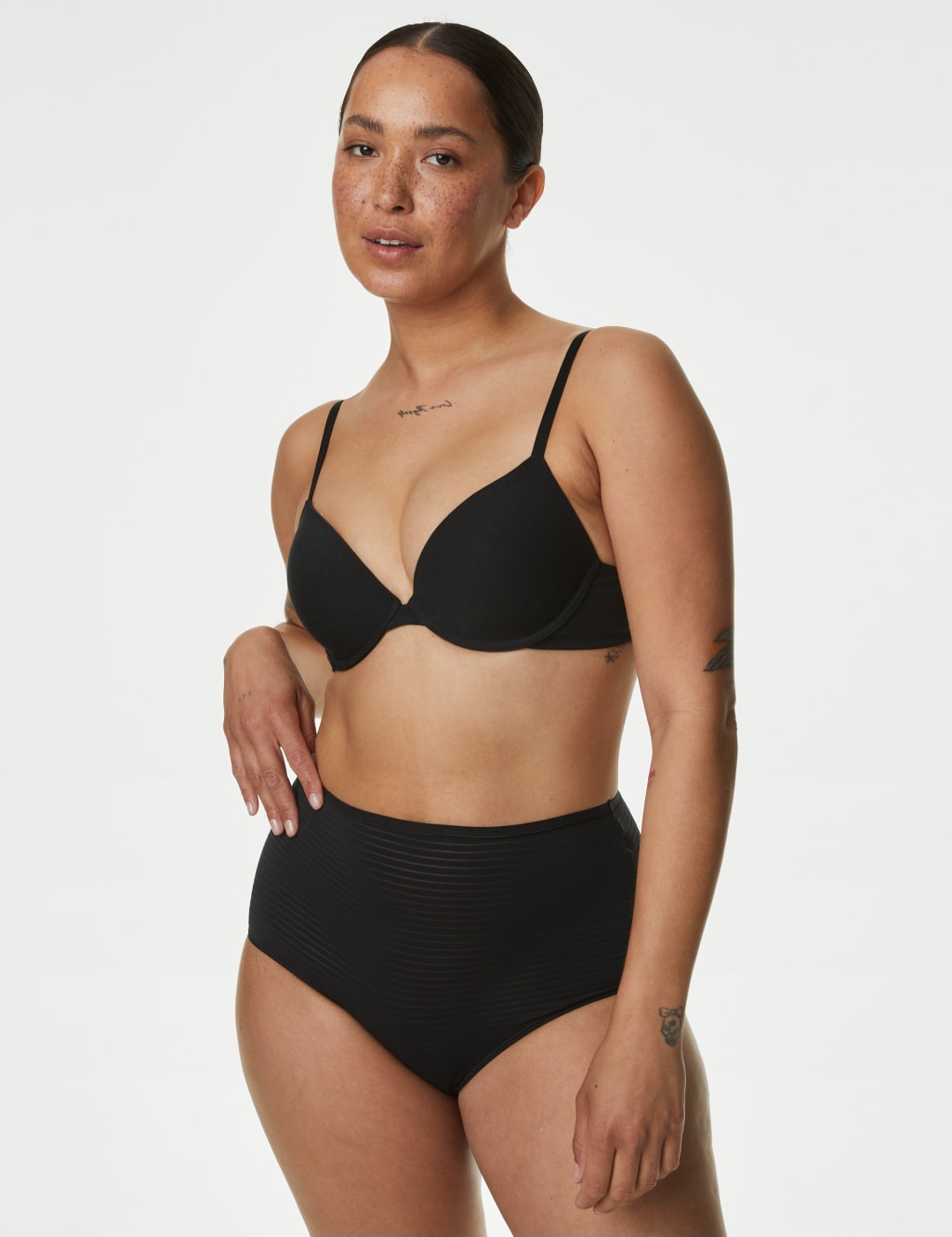 The no-VPL knickers in our collection are designed to stay invisible under any outfit – however close it fits. Get that second-skin feeling thanks to lightweight fabrics such as modal and microfibre. Flexifit™ materials, smooth edges and seam-free constructions ensure there’s no risk of wrinkling or lines. Shop your favourite shapes, from bikinis and Brazilians to high-waisted briefs that offer full coverage. A barely there thong is your go-to when you’re wearing gym leggings or tight trousers. Delivery is free over £60 when you pick multi-packs of versatile colours