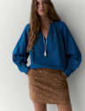 Browse the striking prints and drapey silhouettes in our Per Una shirts and blouses edit. Discover slinky satin options, breathable linen styles and metallic designs that give a dazzling effect. Tie necks, ruffle details and blouson sleeves add feminine touches. Choose free store collection and pick up at your local branch