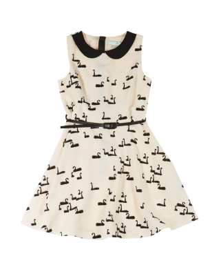 Peter Pan Collar Swan Print Dress with Belt (5-14 Years)