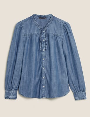 Bring an extra touch of chic to your smart-casual outfit with this flattering long-sleeved blouse. Button-through design in a regular fit. Pretty frill detailing around the neck and down the front. Made with sustainably sourced Tencel™ lyocell. M&S Collection: easy-to-wear wardrobe staples that combine classic and contemporary styles.