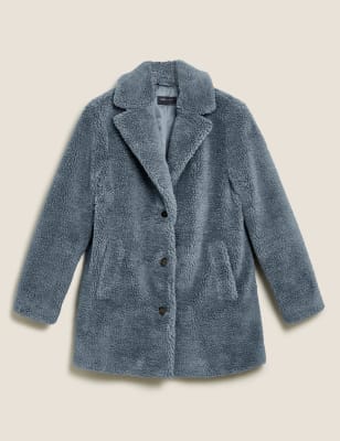 When the temperature drops, cocoon yourself in this snuggly teddy coat. Designed in a comfortable regular fit, this fluffy style fastens with chic horn buttons. Its single breasted shape comes complete with side pockets to keep your hands cosy and an additional internal pocket to keep valuables secure. M&S Collection: easy-to-wear wardrobe staples that combine classic and contemporary styles.